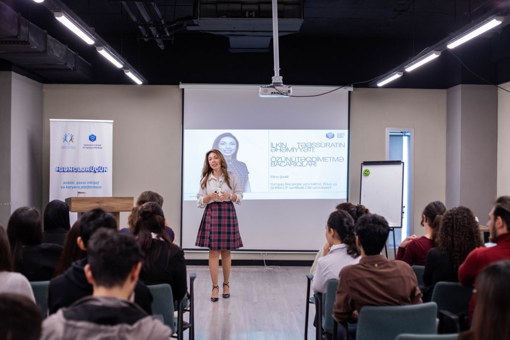 Qeyd edək ki, təlim “Socar Downstream” MMC-nin Öyrənmə və İnkişaf üzrə aparıcı mütəxəssisi Minə Şxəlili tərəfindən keçirilib. Təlimçi öz peşəkar təcrübəsini bölüşərək gənclərə iş mühiti, müsahibə prosesləri və təqdimat zamanı diqqət edilməli ən vacib məqamlar haqqında dəyərli tövsiyələr verib.